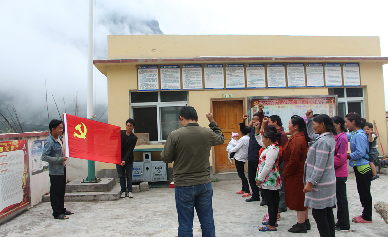 为纪念中国共产党成立97周年,进一步增强党组织的凝聚力和战斗力,增强广大党员荣誉感、责任感,为使群众牢记历史,铭记现在幸福生活的来之不易,切实树立知党恩、感党恩、听党话、跟党走的意识。市商务局驻雄久村第七批工作队结合与推进“两学一做”学习教育常态化制度化和“四讲四爱”群众教育实践活动,于7月1日上午组织群众开展了升国旗唱国歌、重温入党誓词、观看新旧西藏对比图片展等活动。