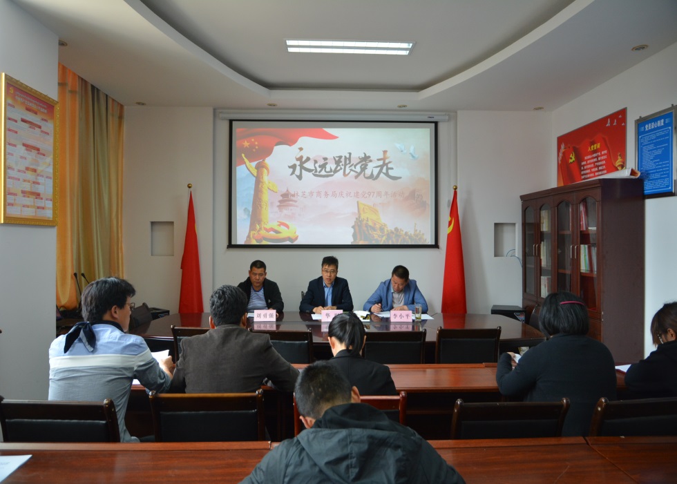 在纪念中国共产党建党97周年到来之际,6月29日,林芝市商务局党支部组织召开了“永远跟党走”主题党员大会,全局在家党员干部职工积极参加了此次活动。