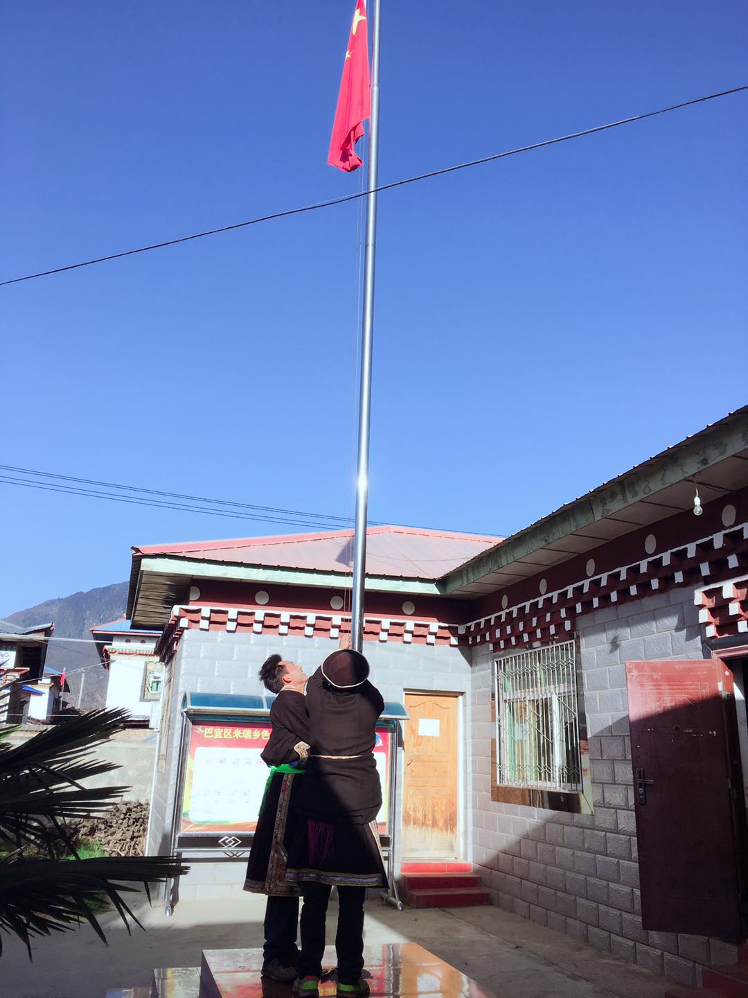 3月28日上午,巴宜区商务局派驻米瑞乡色果拉村驻村工作队与村两委班子一大早就在村文化室集合,全村群众身着节日盛装,以升国旗、唱国歌的方式,隆重纪念3.28西藏百万农奴解放59周年。