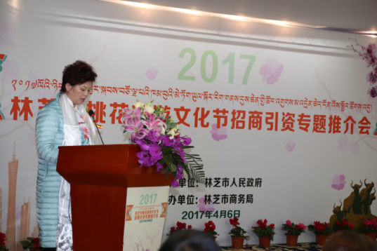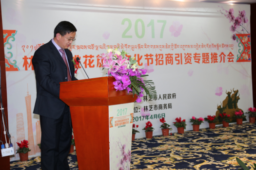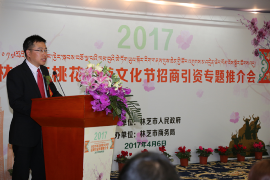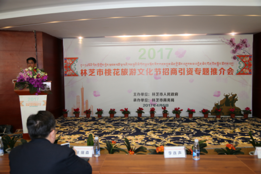 4月6日下午,“2017林芝市桃花旅游文化节招商引资专题推介会”在林芝中恒藏吉喜玛大酒店举行。推介会由林芝市人民政府主办,林芝市商务局承办。林芝市政府、巴宜区政府、市及县区商务主管部门负责人,来自广东及珠海、东莞和中山市商务主管部门及商协会、工商企业界人士,山南市经合局以及林芝市有关媒体代表等约70人参会。